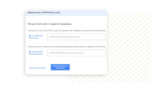 Ստացեք հանրային (կայքի բանալի) և մասնավոր (գաղտնի բանալի) բանալիներ reCAPTCHA մեթոդից: Գնացեք Google ծառայություն և անցեք կայքի գրանցման գործընթացը.