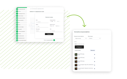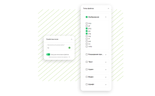 Ստեղծել ձևը կցորդով Եվ ավելացրեք լրացուցիչ ֆայլեր կցելու հնարավորությունը ՝ լուսանկարներ, սքրինշոթեր, տեքստային փաստաթղթեր, արխիվներ, տեսանյութեր և աուդիո: Դիզայնում քաշեք ցանկալի դաշտերը, կազմաձևեք ֆայլերի վերբեռնման վիջեթը և հավաքեք տվյալները ներկառուցված CRM համակարգում: