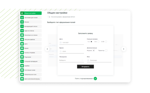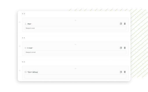 Ստեղծեք լայն տեսականի հետադարձ կապի ձևեր: թռուցիկ, բազմալեզու, առանց կայքի և այլն: Տեղադրեք ցանկալի դաշտերը հարմար drag-n-drop կոնստրուկտորով և ընտրեք դիզայնը: Մի քանի րոպեում ավելացրեք էջին կամ կիսվեք հղումով և հավաքեք զանգեր CRM-ում: