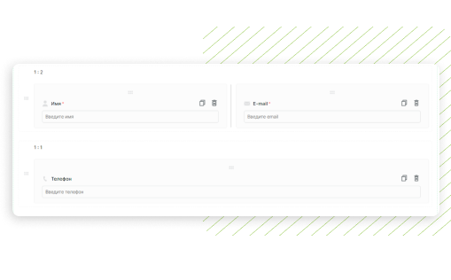 կոնստրուկտորի ռեժիմում նույն տողում տեղադրեք անուն և էլ. Դրանք պարտադիր դարձրեք լրացման համար: Ստորև ավելացրեք դաշտը Հեռախոս