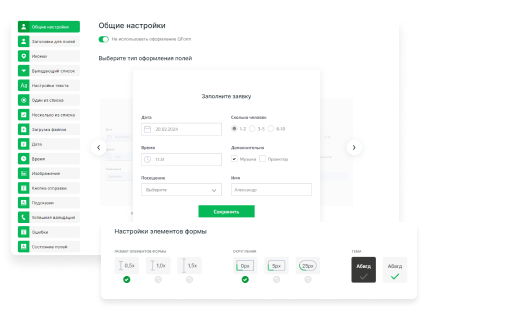 Ընտրեք տարրերի դիզայնի տեսակը՝ չափը, կլորացման աստիճանը, ինչպես նաև տարրերի ցուցադրման տարբերակները, վավերացման ընթացքում ծանուցումները, կոճակի ոճը