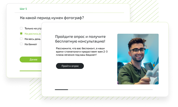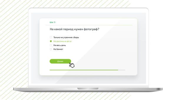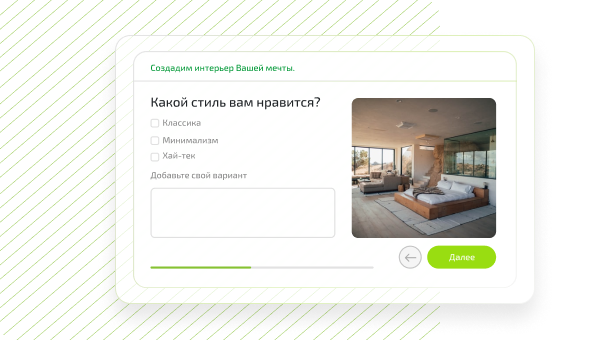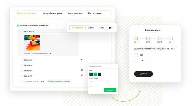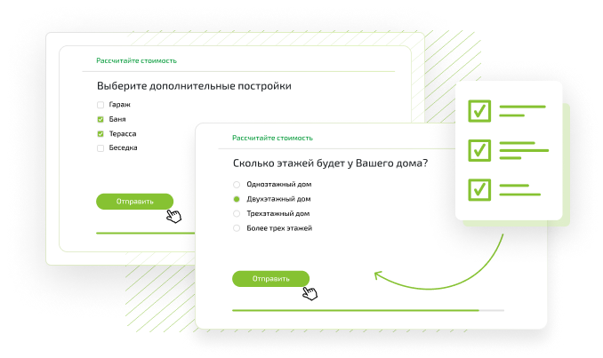 Qform կայքի համար quiz ծառայությունը ստեղծում է ինտերակտիվ ձև ՝ ձեր ցանկացած խնդրանքի համար: Վիկտորինա-ը հարմար վեբ գործիք է, որն օգնում է հանդիսատեսին ներգրավել ներգրավվածության մեջ, որոշել ընտրությունը և ուսումնասիրել նրանց կարիքները: Այցելուն պատասխանում է հարցերին և հայտը թողնում մուտքային տվյալներով