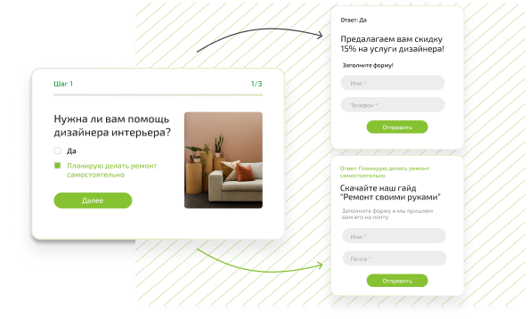 կարգավորեք Վիկտորինա-ի վերջնական փուլը' կախված պատասխաններից: Ընտրեք, թե ինչ կստանա օգտագործողը 'գովազդային կոդ, զեղչ, հայտի ուղարկում կամ պարզապես հարցման արդյունք