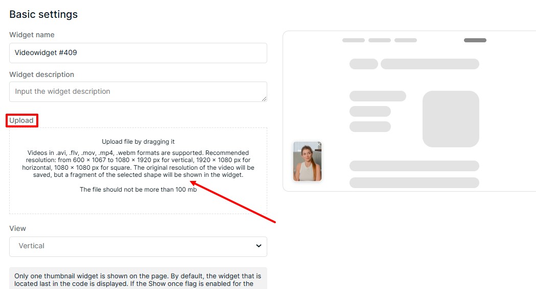 Քաշեք և թողեք վիդեո ֆայլը (mp4, avi, flv, mov, webm) վերբեռնման դաշտում: Համոզվեք, որ ֆայլի չափը 100 ՄԲ-ից պակաս է: