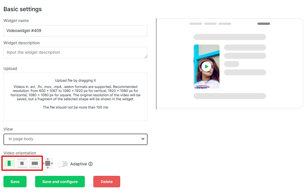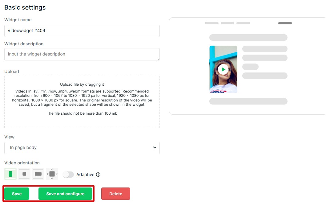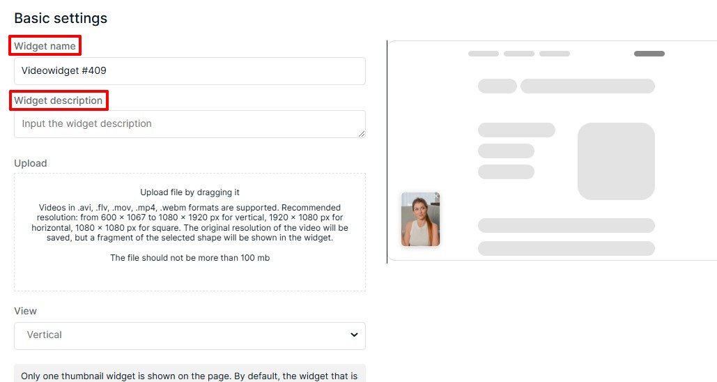 Մուտքագրեք վիջեթի անուն և նկարագրություն: Ցուցադրման տիպի ցանկում ընտրեք «կլոր կամ ուղղահայաց»: