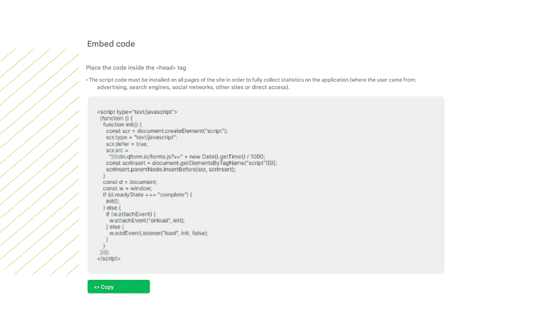Գնացեք «Հրապարակել» բաժինը, այնուհետև «Տեղադրեք կոդը կայքում» ներդիրում: Պատճենեք սցենարը և տեղադրեք այն կայքի յուրաքանչյուր էջի -ում, որտեղ կաշխատի վիջեթը: Այնուհետև պատճենեք վիջեթի կոդը և տեղադրեք այն -ում: