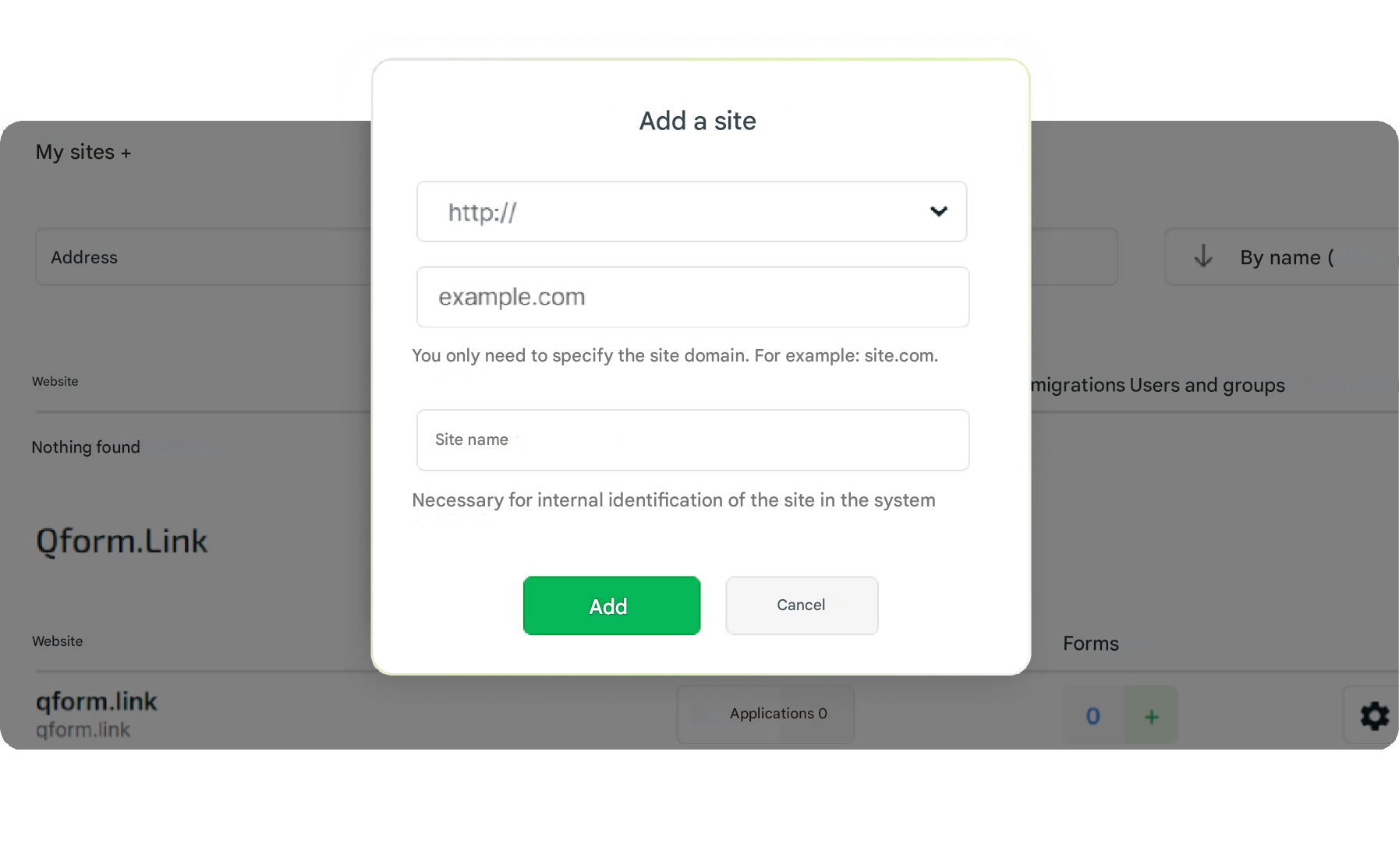 Մուտք գործեք ձեր QForm հաշիվ և ավելացրեք նոր տարածք ձեր կայքի համար: