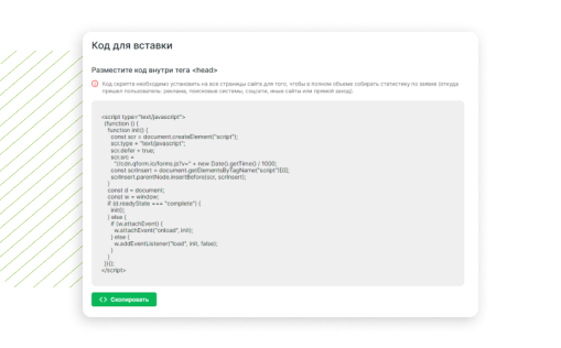 Անցեք Կարգավորումների ներդիրին, բացեք ներդիրի կոդը բաժինը, պատճենեք սցենարը և տեղադրեք այն կայքում ՝ պիտակի ներսում